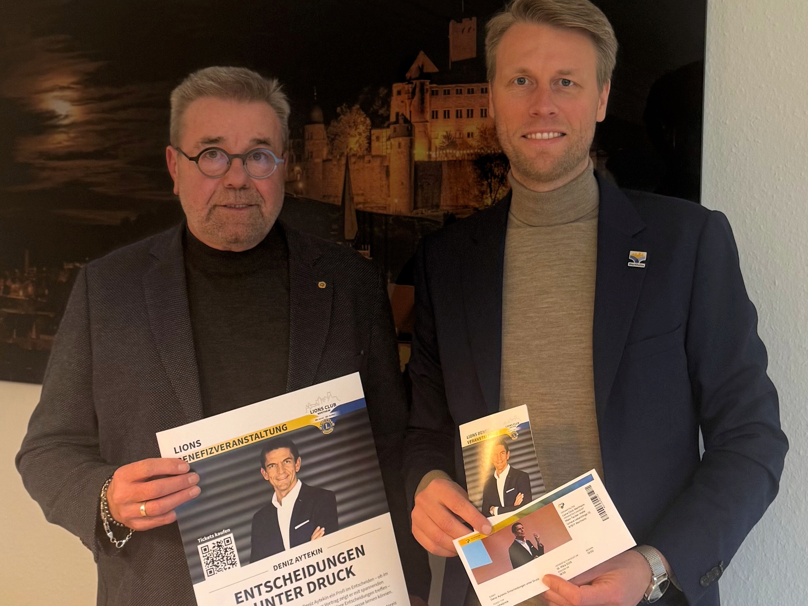 Der Lions Club Wertheim hat Oberbürgermeister Markus Herrera Torrez Tickets für den Benefizabend mit Deniz Aytekin am 19. März 2026 in der Main-Tauber-Halle überreicht. Für Lions Club Präsident Werner Ballweg ein willkommener Anlass, noch einmal auf die besondere Veranstaltung aufmerksam zu machen.